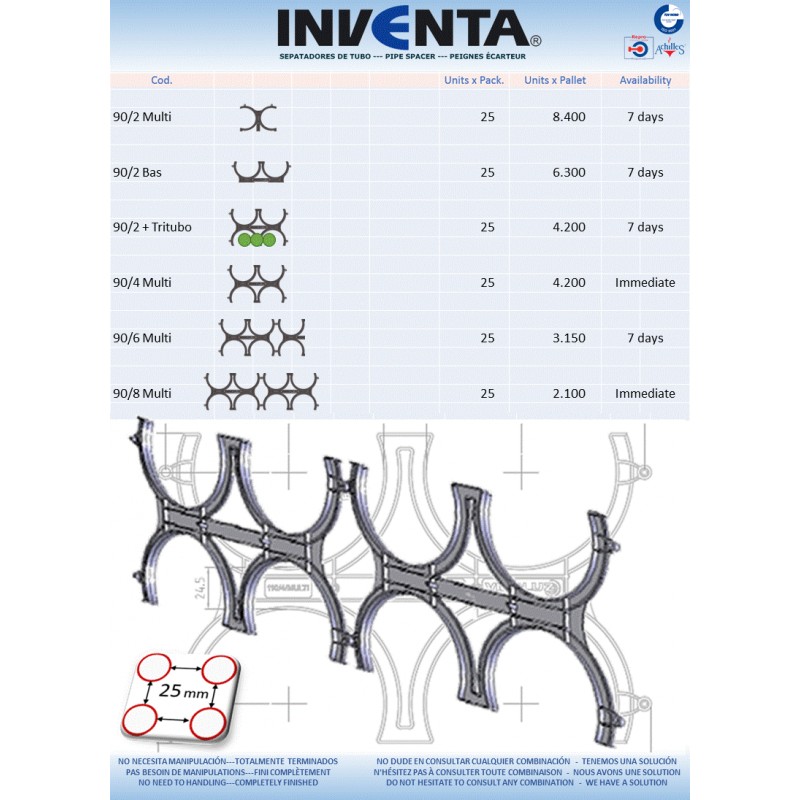 Ils peuvent être installés à la fois verticalement et horizontalement et ne nécessitent aucun type d'outil pour l'assemblage. Largement utilisé dans les canaux électriques et / ou de télécommunications, il est très polyvalent, car vous pouvez ajouter autant de modules que nécessaire, par multiples de 4. Le PEIGNE-ECARTEUR a pour fonction d'aligner et de distancer les tubes.
