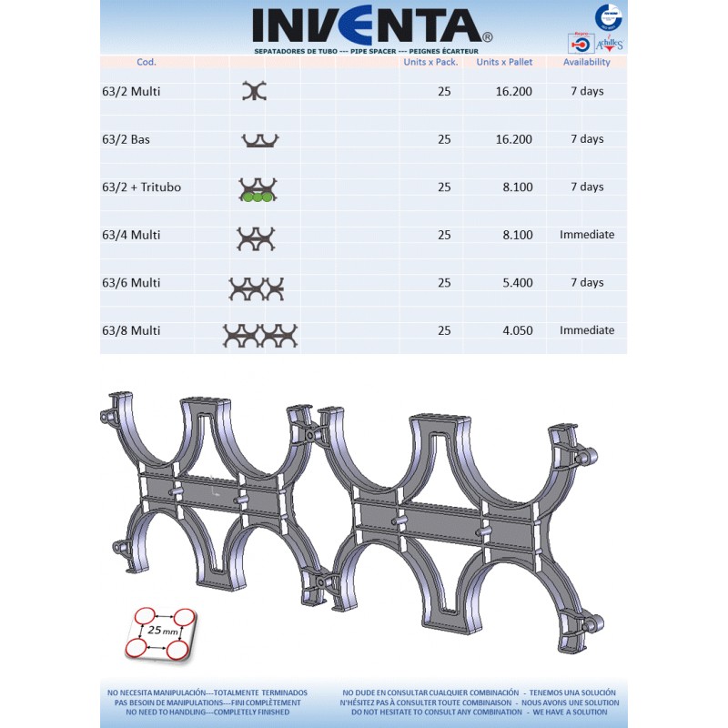 Ils peuvent être installés à la fois verticalement et horizontalement et ne nécessitent aucun type d'outil pour l'assemblage. Largement utilisé dans les canaux électriques et / ou de télécommunications, il est très polyvalent, car vous pouvez ajouter autant de modules que nécessaire, par multiples de 4. Le PEIGNE-ECARTEUR a pour fonction d'aligner et de distancer les tubes.